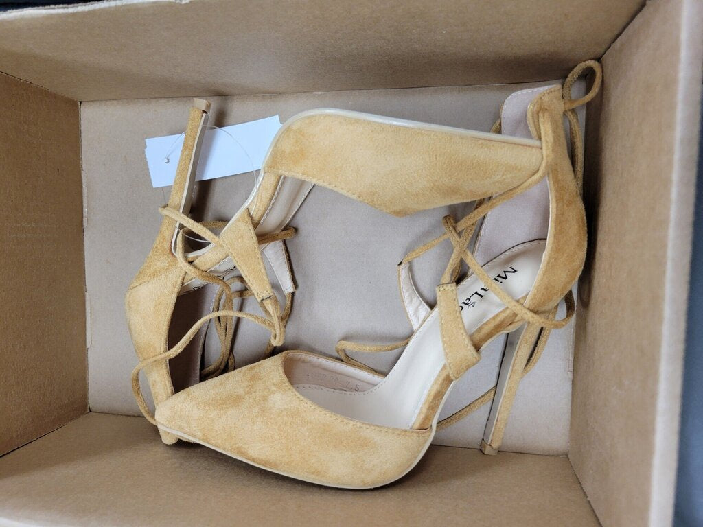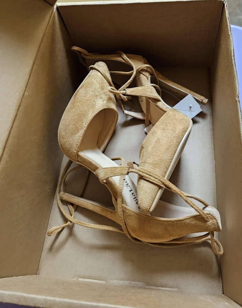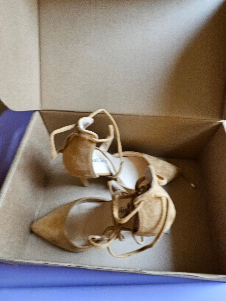 NEW MILA LADY ETHER21 POINTED TOE LACE UP STRAPPY ANKLE ELEGANCE STILETTOS LADY HEAELED PUMPS SHOES, BEIGE, Size: 7.5