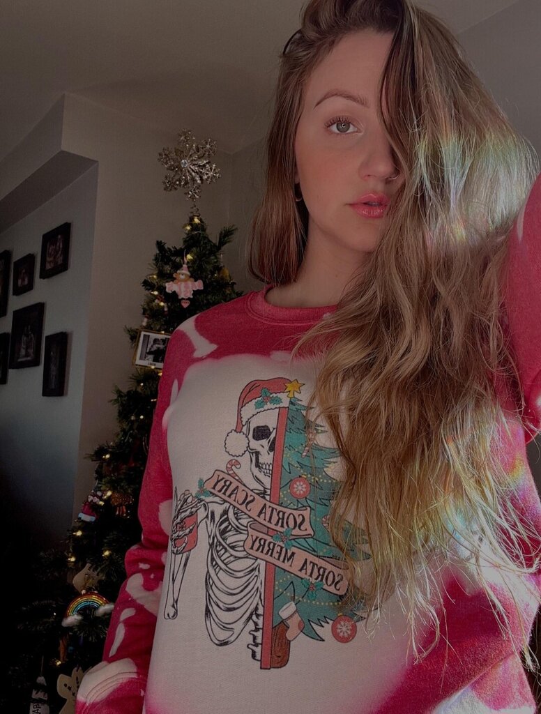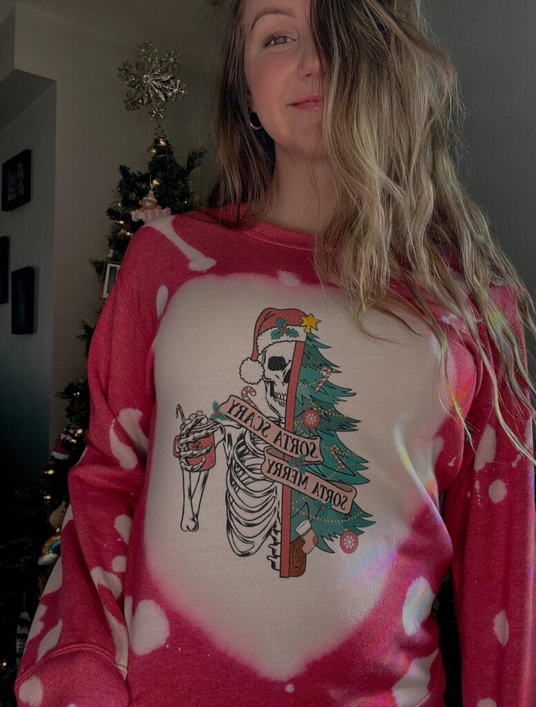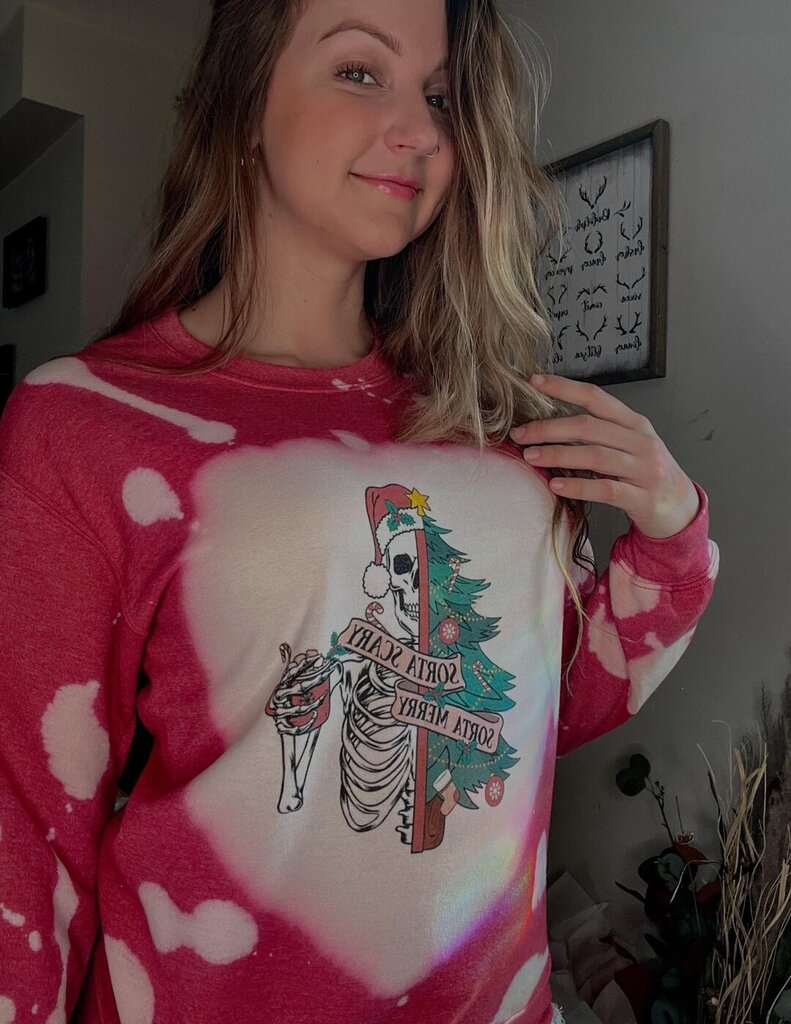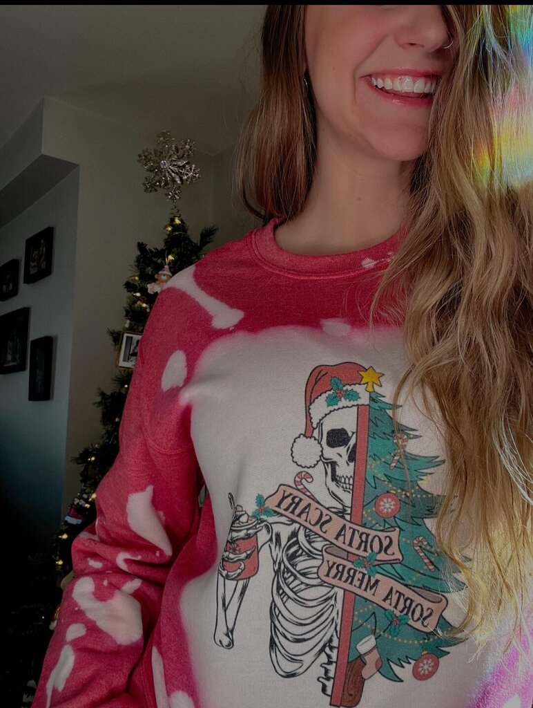 SORTA SCARY BLEACHED SWEA, RED, Size: SMALL