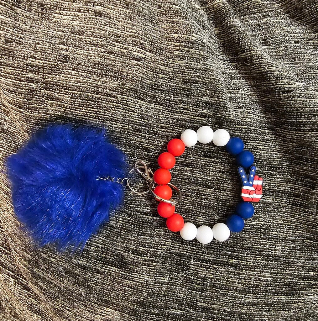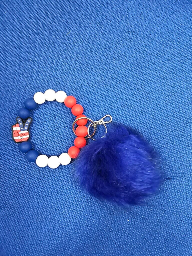 PEACE HAND KEY WRISTLET, RED/WHTI