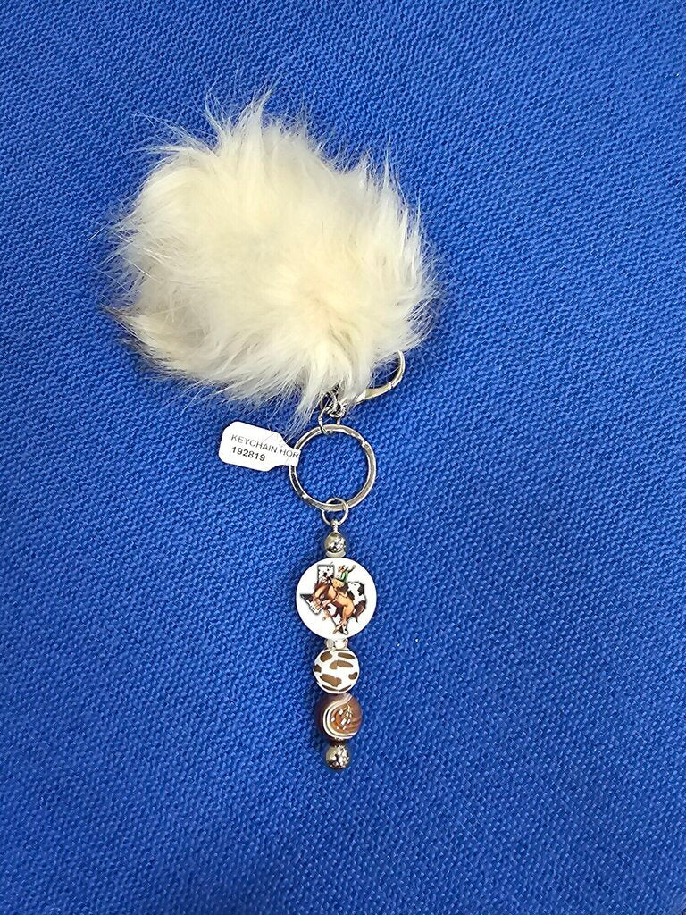 KEYCHAIN HORSE COW POM, BEIGE