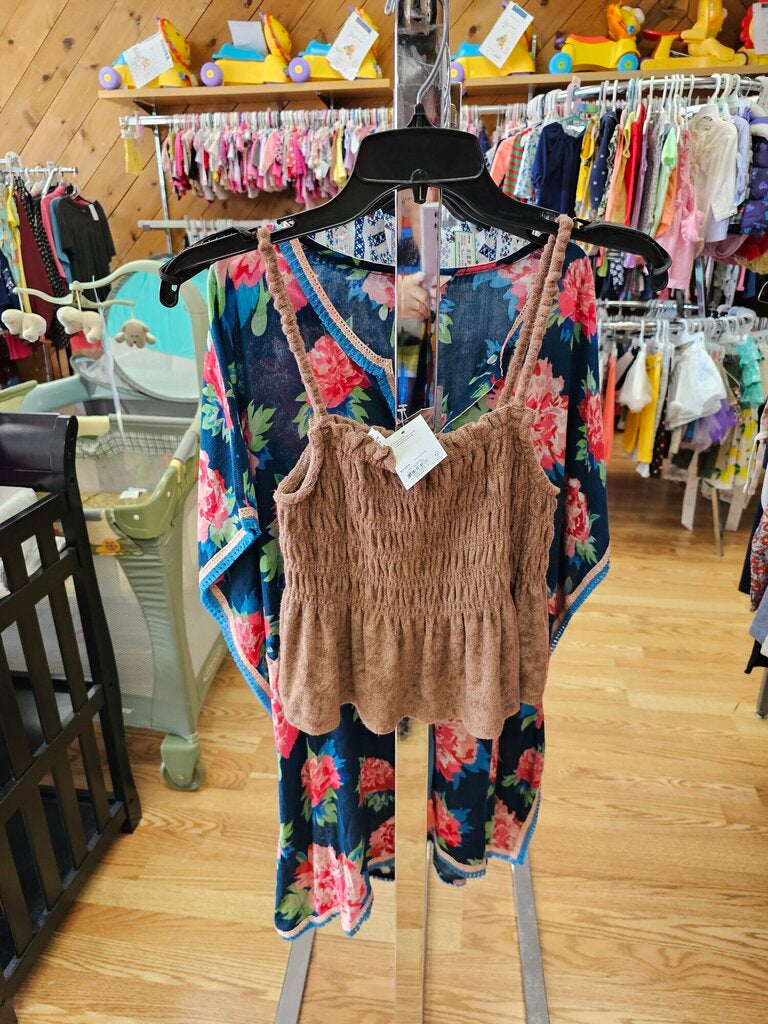 NEW SO TANK SMOCKED, BROWN, Size: MEDIUM